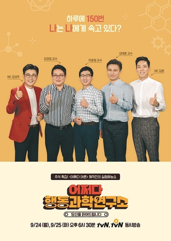 tvN은 '어쩌다 행동과학연구소'가 추석 연휴인 오는 24일과 25일 오후 6시 30분 tvN, O tvN에서 동시 방송된다고 6일 밝혔다.