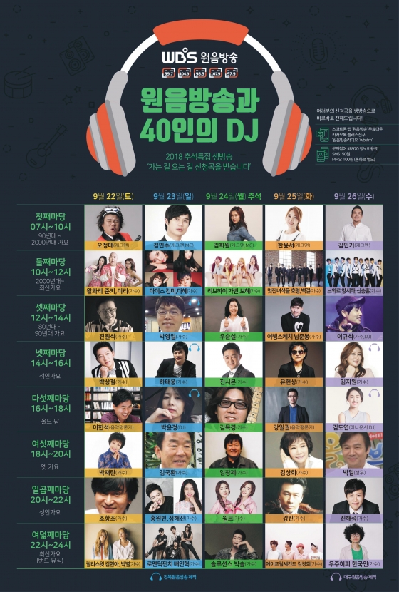 WBS원음방송이 추석 명절을 맞아 오는 22일 오전 7시부터 26일 자정까지 85시간 동안 추석 특집 생방송 '원음방송과 40인의 DJ'(이하 40인의 DJ)를 진행한다.
