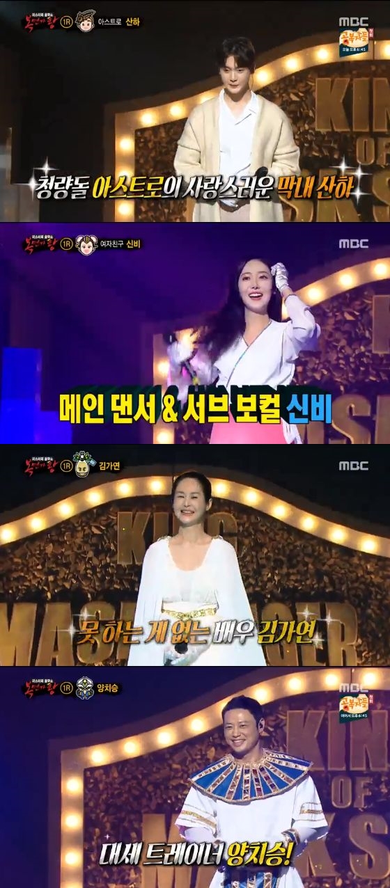 30일 방송된 MBC '복면가왕'에서는 4연승을 거두며 파죽지세의 기세를 이어가고 있는 가왕 '동막골소녀'에게 도전하는 8명 도전자들의 새로운 무대가 공개됐다. 특히 아스트로 산하, 여자친구 신비, 재주꾼 김가연에 양치승 헬스 트레이너까지, 소름돋는 반전의 정체에 시선이 집중됐다.