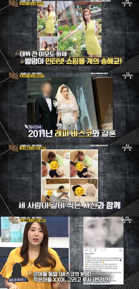 바스코의 일반인 여자친구가 전 부인 배우 박환희를 비난했다. 지난 1일 채널A '풍문으로 들었쇼'에서는 싱글맘 연예인을 주제로 후일담을 전했다. 이날 래퍼 바스코와 결혼해 아들을 낳은 후 이혼한 배우 박환희에 대해서도 언급했다.