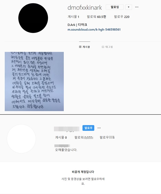 또 디아크의 전여친, 폭로 글을 게재했던 A도 SNS 계정을 비공개로 전환했다. 계정은 비공개였지만 자신의 프로필 소개에 "오해 풀었습니다"는 짧은 글만 남겨 놓았다.