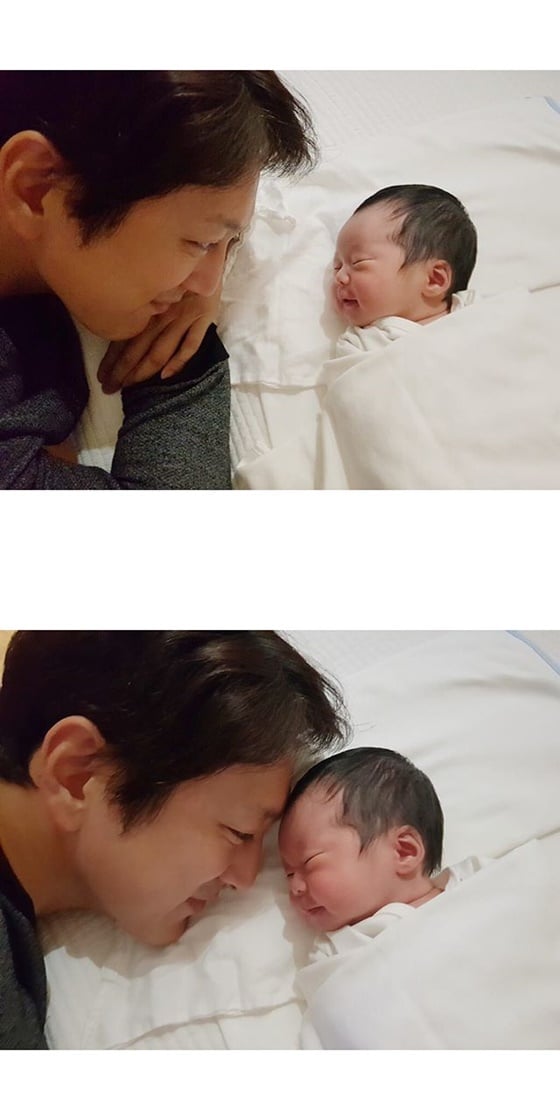 공개된 사진 속 한석준은 딸 사빈 양을 꿀 떨어지는 눈빛으로 바라보고 있다. 또 사빈 양 얼굴에 자신의 이마를 갖다 대 체온을 나누고 있는 모습이 담겼다.