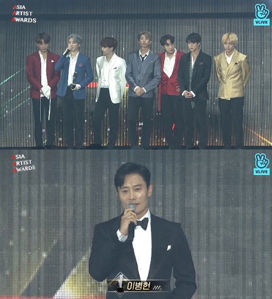이날 이병헌은 배우 부문 대상을, 방탄소년단은 가수 부문 대상을 수상하는 영예를 안았다.