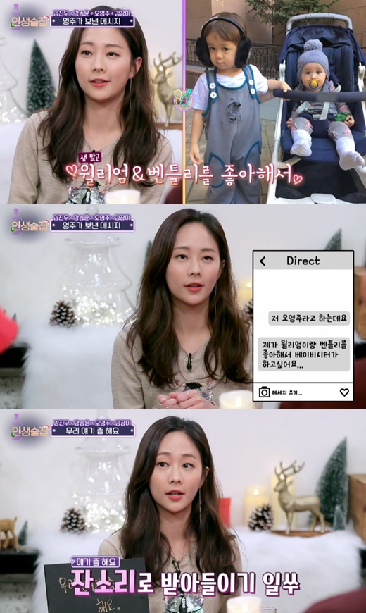 '인생술집'에서도 마찬가지였다. 지난 20일 방송된 tvN '인생술집'에서는 오영주가 '하트시그널' 출연자였던 김장미와 함께 게스트로 출연, 다양한 이야기를 전했다. 이 가운데 오영주는 "내가 평소 좋아하는 분이 있었다"는 고백으로 관심을 모았다. 하지만 "윌리엄과 벤틀리를 좋아했다. 샘해밍턴의 SNS로 '베이비시터가 필요하면 영어도 할 수 있으니까 진심으로 해보고 싶다'고 보냈다"고 반전의 일화를 밝혔다.