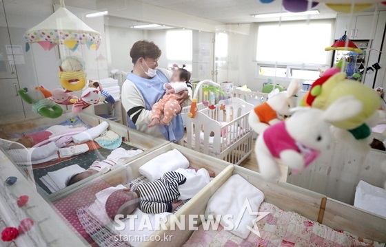 28일 서울 서대문구 창천동 동방사회복지회 영아 일시 보호소. 이날도 어김없이 아이들의 울음소리가 끊이지 않는다. 보육사들은 한 손으로 아이에게 젖병을 물린 채로 다른 아이를 어르느라 눈코 뜰 새가 없다.