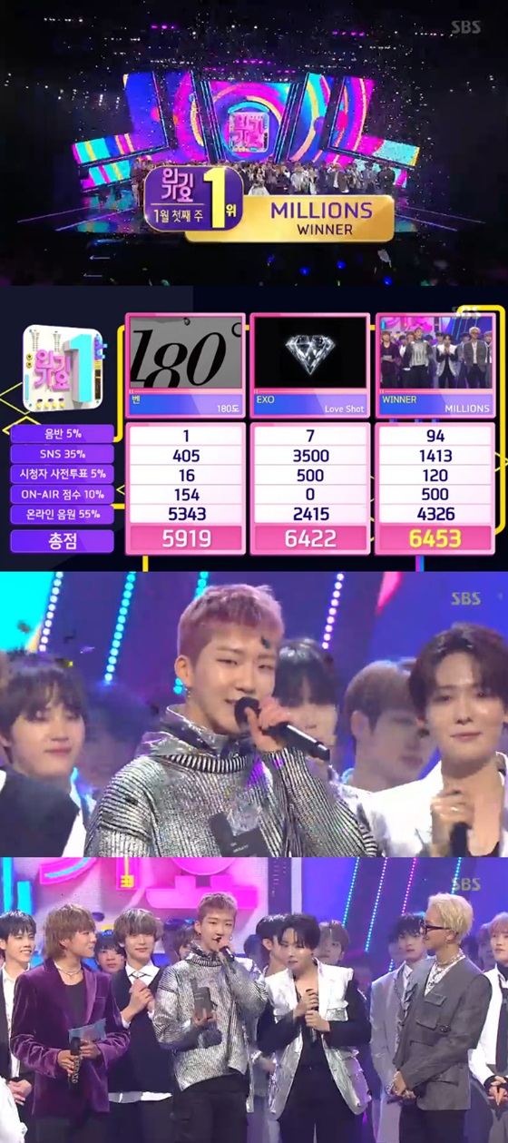 위너는 이번 1위로 '밀리언즈'로 엠넷 '엠카운트다운', MBC '쇼! 음악중심' 등 음악방송에서 총 5관왕을 달성했다.