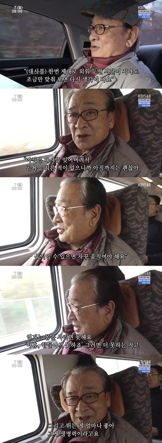 이날 이순재는 한 달만의 지방 연극 공연을 위해 몸을 움직였다. 차에 오른 이순재는 "대사를 한 번 제대로 외워두면 시간이 지나서 조금만 맞춰도 다시 생각이 난다"며 대본을 들여다봤다.