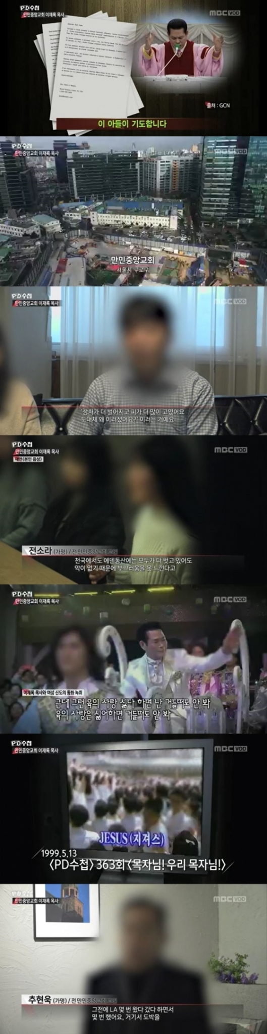 MBC 'PD수첩'이 만민중앙교회 이재록 목사를 둘러싼 각종 의혹을 집중 폭로했다.
