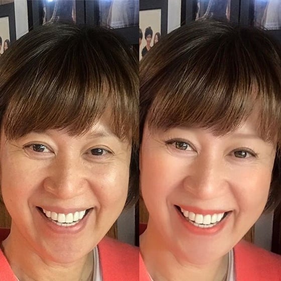 사진 속에는 박미선의 민낯과 어플로 화장 효과를 준 모습이 함께 담겨있다.