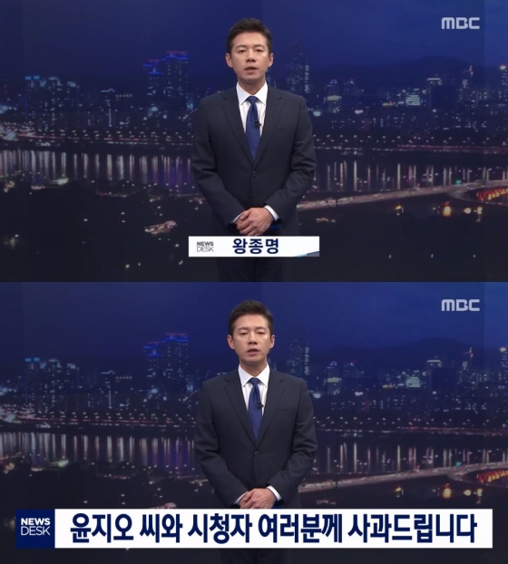 이에 앞서 '뉴스데스크' 제작진 또한 공식 사과문을 전달했다. 제작진은 "어제 '뉴스데스크'는 고 장자연 씨의 동료 배우 윤지오 씨를 스튜디오에 초대해 생방송으로 인터뷰했습니다. 이 과정에서 왕종명 앵커가 정치인의 실명을 밝혀달라고 거듭 요구한 부분이 출연자를 배려하지 않은 무례하고 부적절한 질문이었다는 시청자들의 비판이 많았습니다"라고 설명했다.