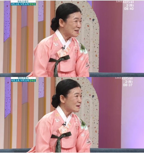 한편 안숙선은 "그때에는 귀하게 대접받던 시절이 아니라, 살기 힘든 시절이라 인력이 필요하던 때"라며 "반겨주던 외가와 달리 친가에서는 반대가 있었다"라며 과거를 회상하기도 했다.