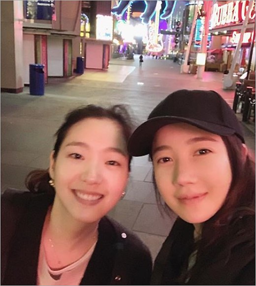 공개된 사진 속 이지아는 밤거리를 배경으로 김고은과 함께 환하게 웃고있는 모습이 담겼다.
