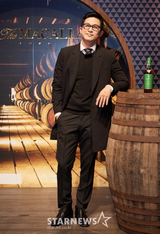 배우 권성민이 4일 오후 서울옥션 강남센터에서 열린 맥캘란 72년 제네시스 디캔터 한정판 런칭행사에 참석해 포즈를 취하고 있다. 맥캘란 역사상 가장 오래된 연산인 '맥캘란 72년 제네시스 디캔터'는 지난해 5월 증설한 증류소를 기념하기 위해 기획된 제품으로 국내에 단 2병이 입고됐다. /사진제공=애드링턴코리아