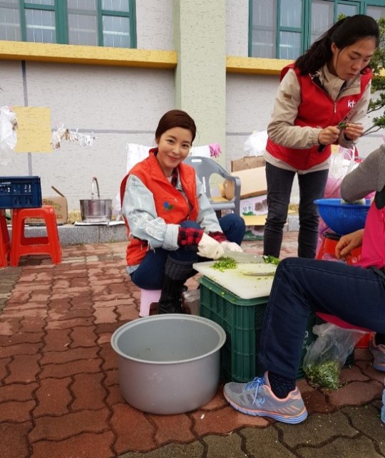 공개된 사진 속 김규리는 봉사활동을 하며 기념 사진을 남기고 있다. 김규리의 밝은 표정이 눈길을 끈다.