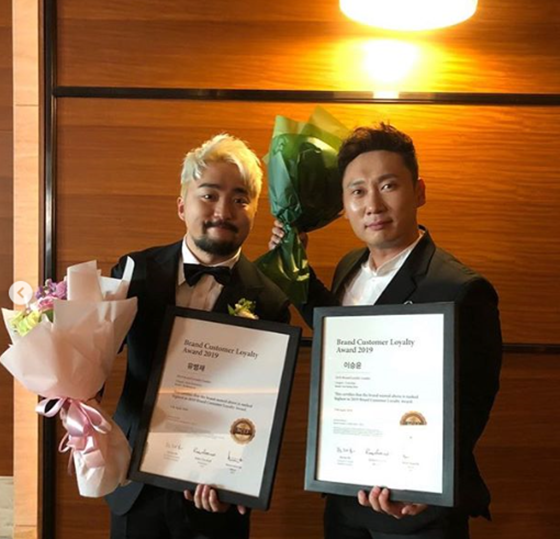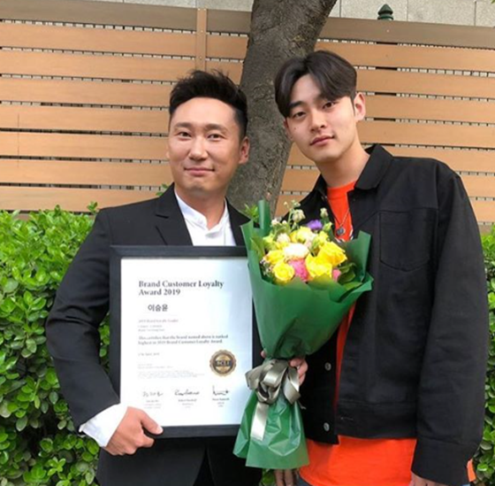 이승윤은 17일 자신의 인스타그램에 "'브랜드고객충성도대상'에서 상 받았습니다. 병재도 받았고요. 고맙다 현석아"라는 글과 함께 사진을 게재했다.