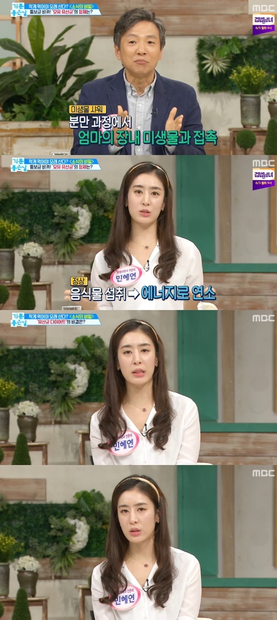 이날 방송에서 민혜연 가정의학과 전문의는 "모유 유산균이 다이어트에 효능을 인정받았다. 비만인 성인 60명을 대상으로 실험을 했는데, 모유 유산균을 먹은 쪽에서 체중, BMI, 허리, 엉덩이둘레가 감소했다"라면서 "허리둘레가 6주간 평균 4cm, 12주간 5cm가 줄어들었다"라고 밝혔다.