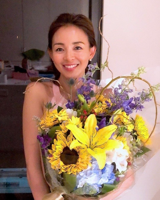 공개된 사진 속 야노시호는 큰 꽃다발을 들고 기뻐하고 있는 모습이다. 특히 야노시호는 수줍은 듯 미소를 짓고 있어 시선을 사로잡는다.