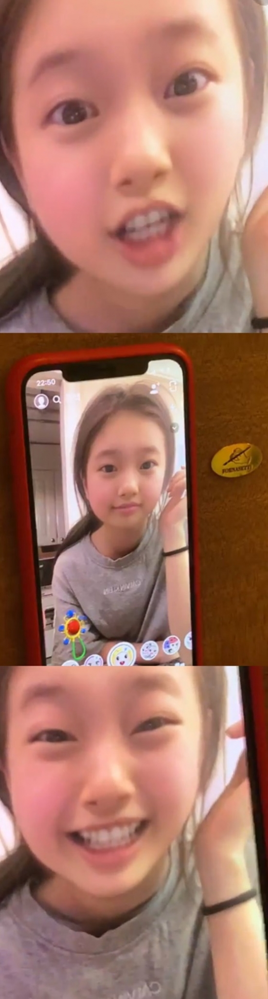 영상 속 수지는 '애기얼굴 어플'인 스냅챗 베이비필터를 사용하며 행복해하는 모습을 선보였다.