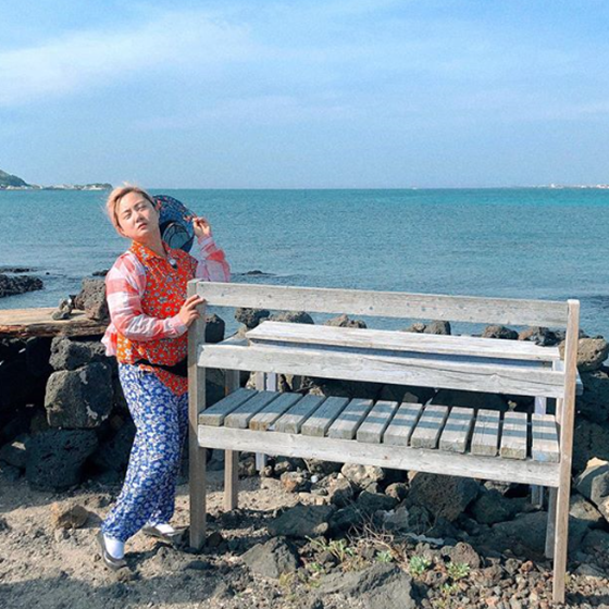 박나래는 25일 자신의 인스타그램에 '제주도, 풀 뜯어먹는 소리, 농사 룩, 비비드 컬러, 바람 느끼는 중, 박나래, 금능해변, 엣지있는 발끝'이라는 해시태그와 함께 사진을 게재했다.