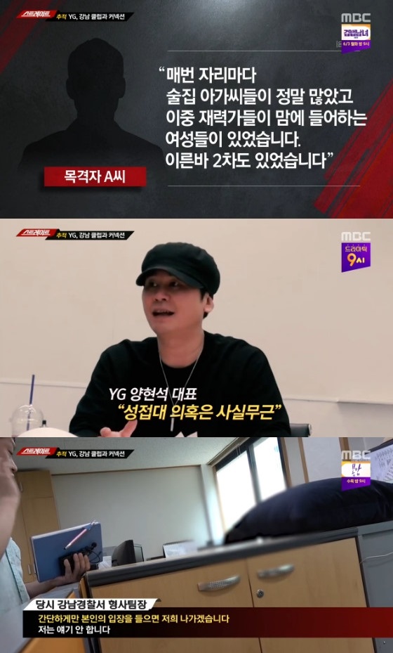 MBC 탐사기획 '스트레이트'가 지난 27일 방송된 이후 파장이 거세다. YG엔터테인먼트(이하 YG)의 성접대 의혹과 접대 과정 중 마약 투약 의혹이 제기된 것.