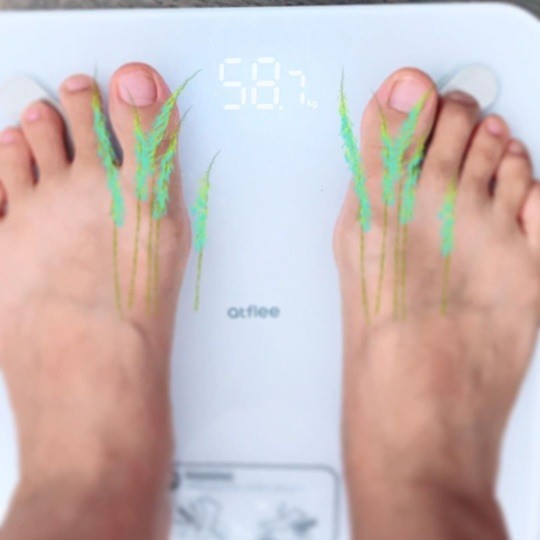 또 다른 사진에는 몸무게를 인증한 체중계가 담겼다. 체중계는 58.7kg을 가리키고 있어 눈길을 끈다.