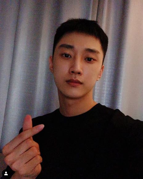 사진 속 진영은 손 하트로 팬들에게 인사를 전했다.