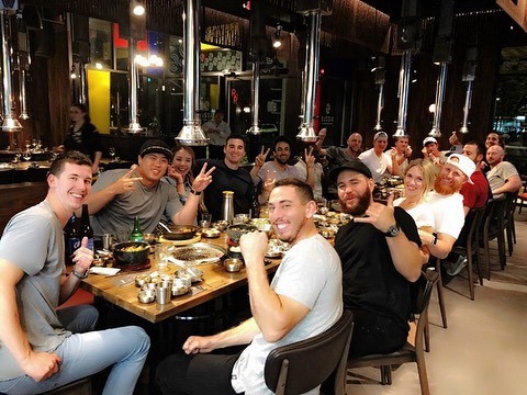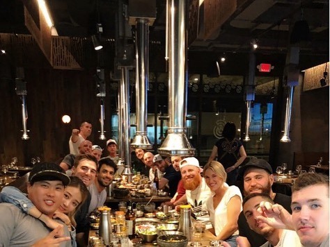류현진은 25일 자신의 인스타그램에 "한국 BBQ!~지난 밤 우리 팀 동료들과 함께(Korean BBQ~with my teammates last night~)"라는 글과 함께 사진을 게재했다.