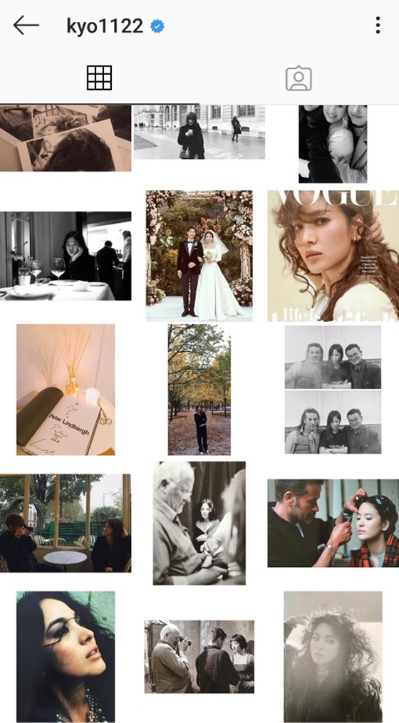 27일 오후 송혜교의 공식 인스타그램에는 송중기와 함께 찍은 사진들이 게재돼 있다.