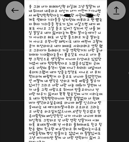 그분이 화난이유가 얘네 저랑 쌩까고 인스타로 친목질해서 화났어요 인거같은데 그럴거면 그냥 지인통해서 번호알아내셔서 저한테 직접적으로 사과요구하시지 그러셨어요 얼마나 깔게없으면 페미로 까는지도 모르겠고 그분과 더이상 연관 짓지말아주세요. 저도 그분에게 악감정 있는 상태도 아니었고 정말 관심이 없어서 어떻게 살든 상관없습니다. 그저 치료 잘 받으시길.