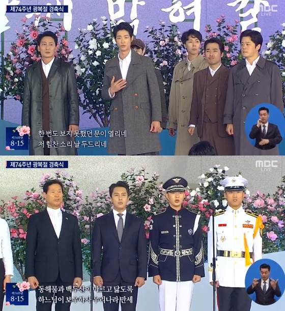 이어 김동완, 키, 이창섭이 무대에 올라 독립유공자의 자손들과 함께 애국가를 4절까지 제창했다.
