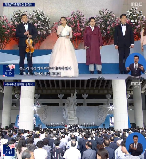 15일 오전 충남 천안 독립기념관에서는 제74주년 광복절 경축식이 열렸다. 이날 신화 김동완, 비투비 이창섭, 샤이니 키, 가수 소향, 팝페라 가수 임형주, 바리톤 안희도 등이 무대에 올라 축하 공연을 진행했다.