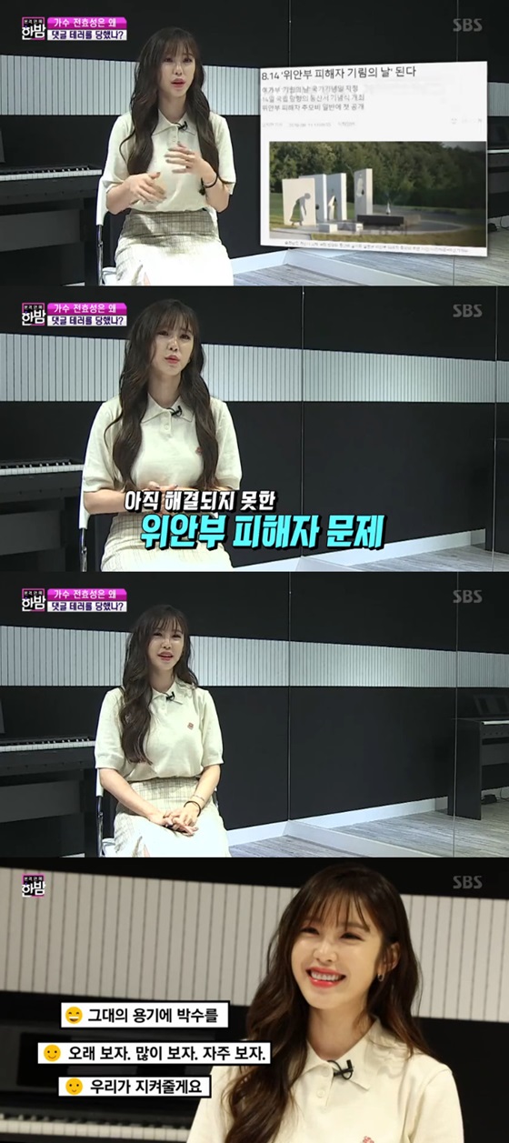 20일 오후 방송된 SBS 연예 정보프로그램 '본격 연예 한밤'(이하 '한밤')에서는 최근 SNS에 올린 게시물로 때 아닌 곤욕을 치른 전효성을 만났다.