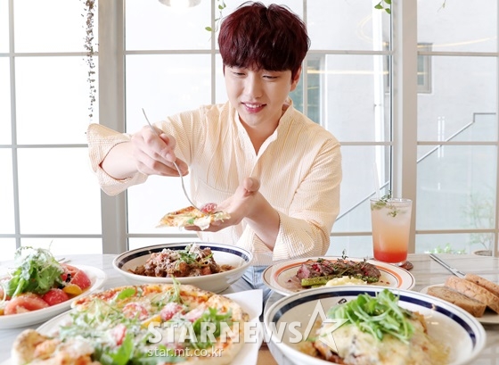 그룹 B1A4의 산들(27·이정환)은 사진 촬영이 끝나기가 무섭게 피자 한 조각을 입 안에 넣었다. 한껏 불어난 몸으로 약속 장소에 나타난 그는 "밤 12시까지 라디오 DJ를 하려면, 그때까지 에너지가 있어야 하니까 계속 먹게 되더라"고 너스레를 떨었다.