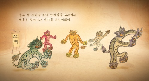통일신라 대문장가 최치원은 '향악잡영오수'에서 당시 저잣거리에서 유행한 다섯 가지 놀이를 소개한다. 그런데 이 연희의 묘사가 우리에게 '익숙한 옛 것'들과는 무척 다르다. 눈이 쑥 들어가고 코가 높은 낯선 생김새의 가면을 썼는가 하면 당시 신라에는 존재하지 않았던 사자의 꾸밈을 하고 있는 것. 그들은 도대체 어디로부터 온 것일까.