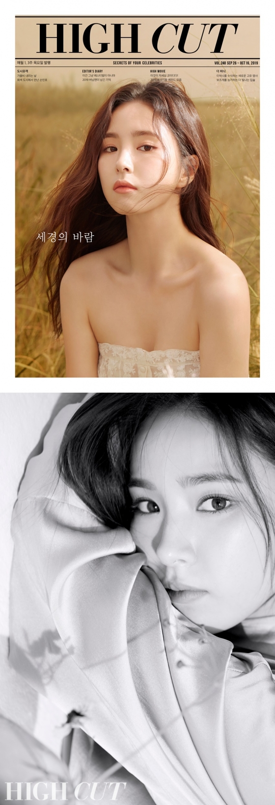 신세경은 26일 발행하는 스타 스타일 매거진 '하이컷'을 통해 맑고 투명한 아름다움을 드러냈다. 황금빛 들판에 불어오는 바람에 신세경의 머리카락이 흩날리는 모습은 천상계의 문이 열린 듯 신비로웠다.