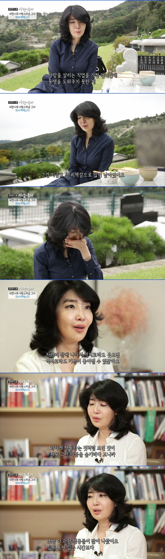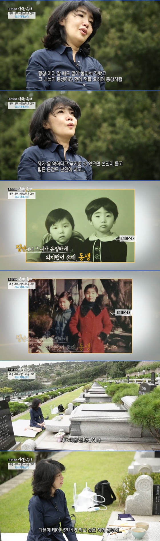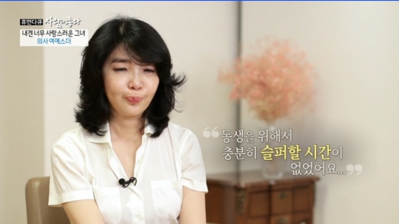 여에스더는 "항상 붙어다녔다. 어딜 가든 함께했다"며 "동생이지만 저보다 언니 같았다"고 소개했다. 든든하던 동생은 3년 전 마흔 아홉이라는 나이에 스스로 생을 마감했다. 지휘자를 꿈꿨지만 아버지의 사업을 물려 받아야 했던 아픈 사연을 지녔다고 밝혔다.
