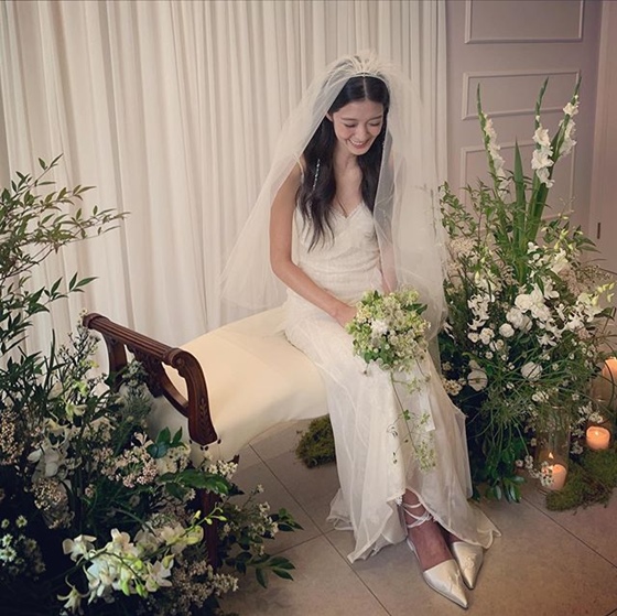 사진 속에는 10월의 신부가 된 강소영의 모습이 담겨있다. 새 신부의 행복한 미소가 눈길을 사로잡는다.
