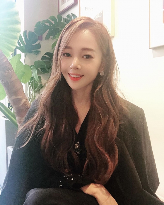 공개된 사진 속 김보미는 길게 늘어뜨린 웨이브 머리를 한 채 활짝 웃고 있다.