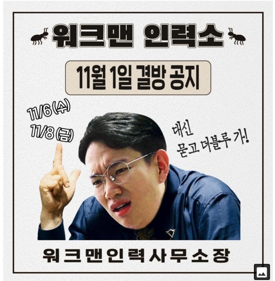 지난 31일 워크맨 유튜브 채널 커뮤니티에 "잡것들~~♥ 인력소장이다~ 내일이 워크맨 본방송 날인데, 결방하게 됐어"라고 운을 띄웠다.
