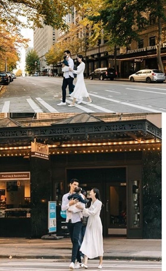 사진 속 혜박과, 리아를 안고 있는 브라이언 박은 횡단 보도를 거닐고 있다. 특히 멀리서도 느껴지는 행복이 시선을 사로잡는다,