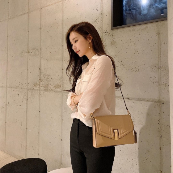 공개된 사진 속 야옹이 작가는 가방을 멘 채 옆 모습을 보여주고 있다. 긴 웨이브 머리에 깔끔한 흰 와이셔츠와 검은색 슬랙스 룩에 갈색 가방으로 포인트를 줬다.