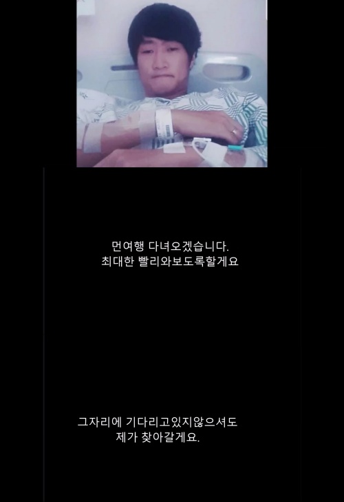 마지막으로 그는 "사랑하는 사람들을 위해 아주 먼 여행을 떠나겠다"면서 "고작 해봐야 어두운 곳 구석에서 웅크리고 이겨내러 용쓰는 작은 공간뿐이겠지만 이겨내 보겠다. 최대한 빨리 돌아오겠다"고 말했다.
