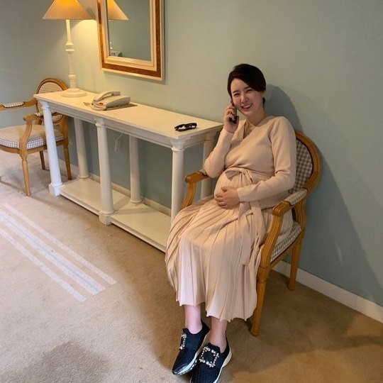 함께 올린 사진 속 정 아나운서는 카메라를 응시하며 미소짓고 있다. 특히 그는 만삭의 배를 쓰다듬고 있어 눈길을 모은다.