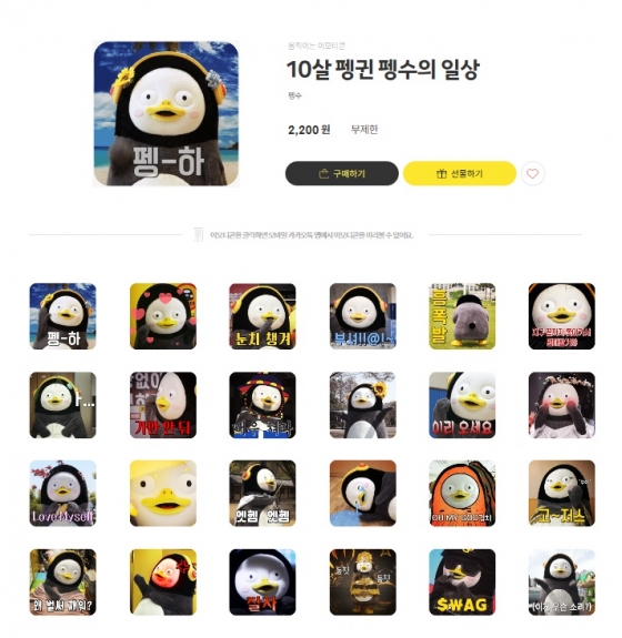 이번 펭수의 첫 카카오톡 이모티콘 '펭수의 일상'은 '자이언트 펭TV' 방송에서 나온 펭수의 모습을 활용한 24종의 움직이는 이미지로 구성됐다.