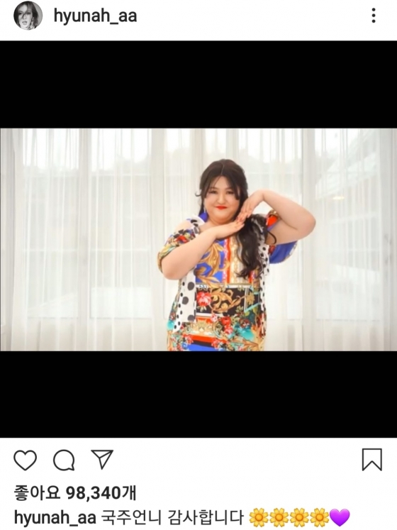 이 영상을 본 현아는 15일 자신의 인스타그램에 이국주의 커버 영상을 캡처한 사진을 올린 뒤 "국주 언니 감사합니다♥"라는 글을 게재했다.