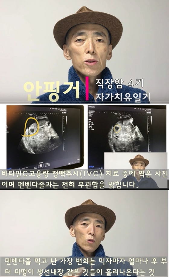 안핑거는 지난 4월 직장암 4기를 판정받은 후 병원의 항암치료 권고를 거절하고 집에서 자가치유를 해 온 인물이다. 지난 7월부터 유튜브에 '직장암 4기 자가치유 일기'라는 제목의 영상을 업로드 해왔으며, 지난 9월부터 펜벤다졸을 직접 복용하며 그 경과를 공유해 왔다.
