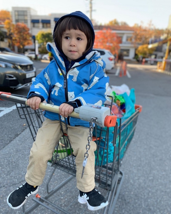 사진 속 윌리엄은 마트 카트에 앉아 앙증맞은 두 손으로 손잡이를 꼭 잡고 있다. 패딩을 입고 모자를 쓴 윌리엄은 추운 듯 살짝 찡그린 표정으로 귀여움을 보여줬다.