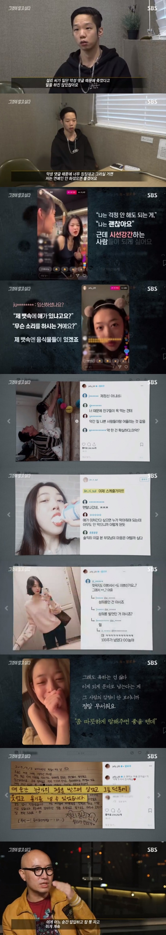 '그것이 알고싶다'에서 고(故) 설리의 죽음을 '악플'로 초점 맞췄다.