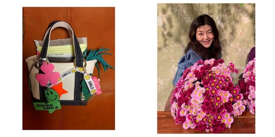 공개된 사진 속에는 한혜연이 베이지색 가방에 액세서리 악세사리 여러 개를 장식한 모습이 보인다. 큰 분홍색 세 잎 클로버와 스마일 이모티콘이 눈에 띈다.