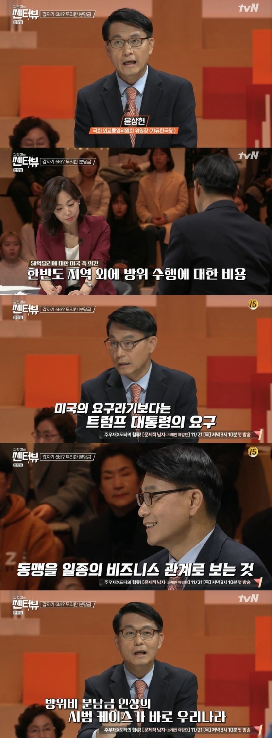 18일 오후 방송된 tvN 시사·교양 프로그램 '김현정의 쎈터 : 뷰'에서는 미국이 요구한 한국 방위비 분담금에 대한 이야기를 다뤘다.